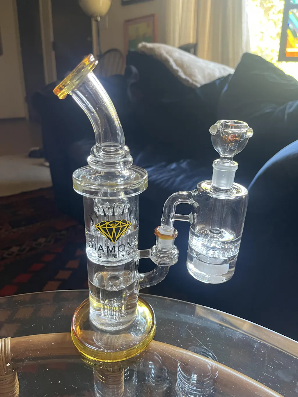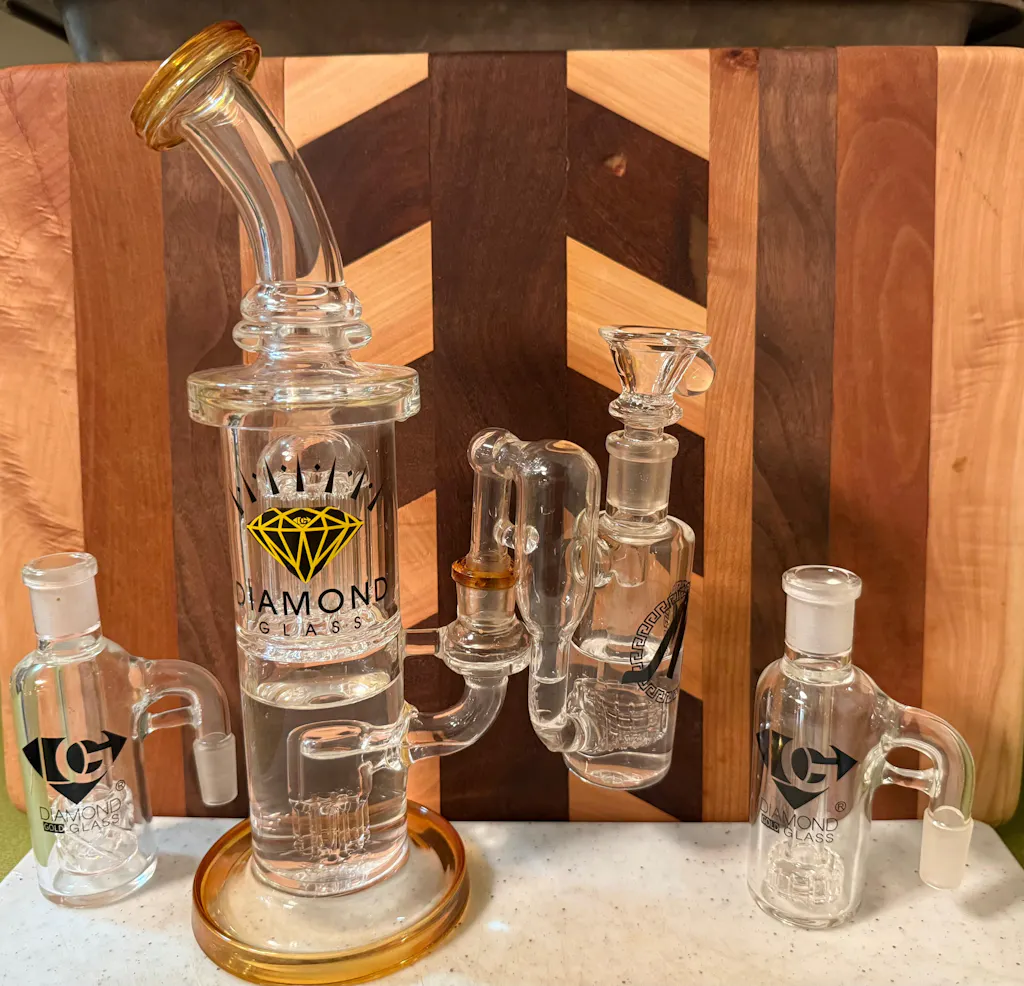 11” Diamond Trophy Rig with Double Percs, by Diamond Glass (free banger included)